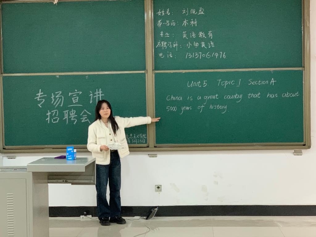 3月25日,我院在A3-114教室举办商丘工学院附属兴华学校专场宣讲招聘会。我院部分学生参会。