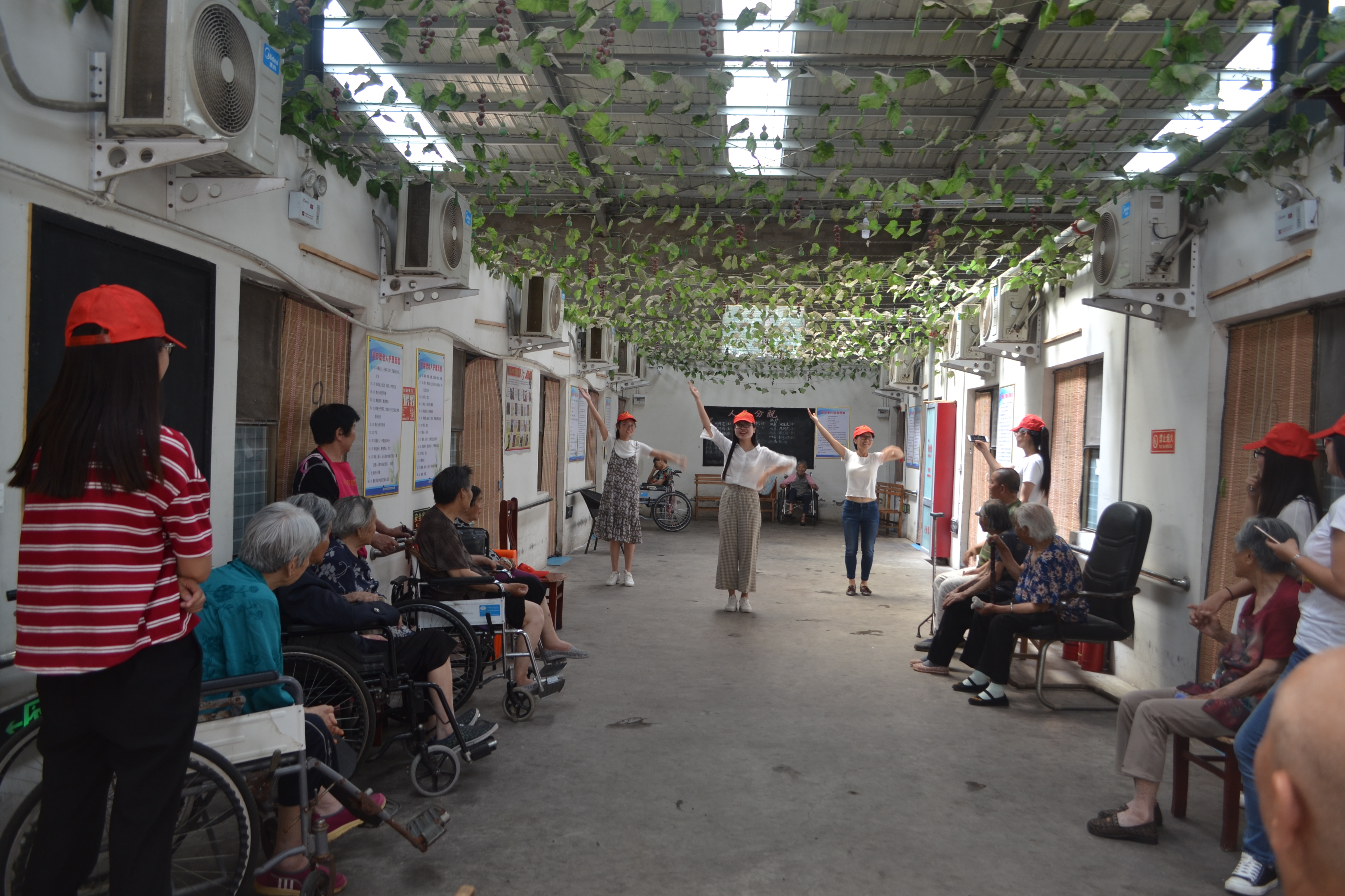 一到养老院,志愿者们便分组行动,有的为老人整理房间、床铺、剪指甲,有的陪老人们唠家常,了解他们的日常生活及身体健康状况。老人们分享着自己的往事,同学们分享自己的大学生活,这一过程的气氛颇为和谐,老人们的脸上一直洋溢着满足的笑容。志愿者们在得知有一位老人过生日时,他们主动为老人唱生日歌,为她献上生日的祝福。这些来自志愿者们真切的关怀,让老人们切实感受到了温暖。随后,志愿者为老人们表演了唱歌,跳舞,小品,在欢声笑语中老人们像孩童一样玩的不亦乐乎,热烈的氛围把老人和志愿者的心紧紧拴在一起,温情弥漫了整个万家养老院。