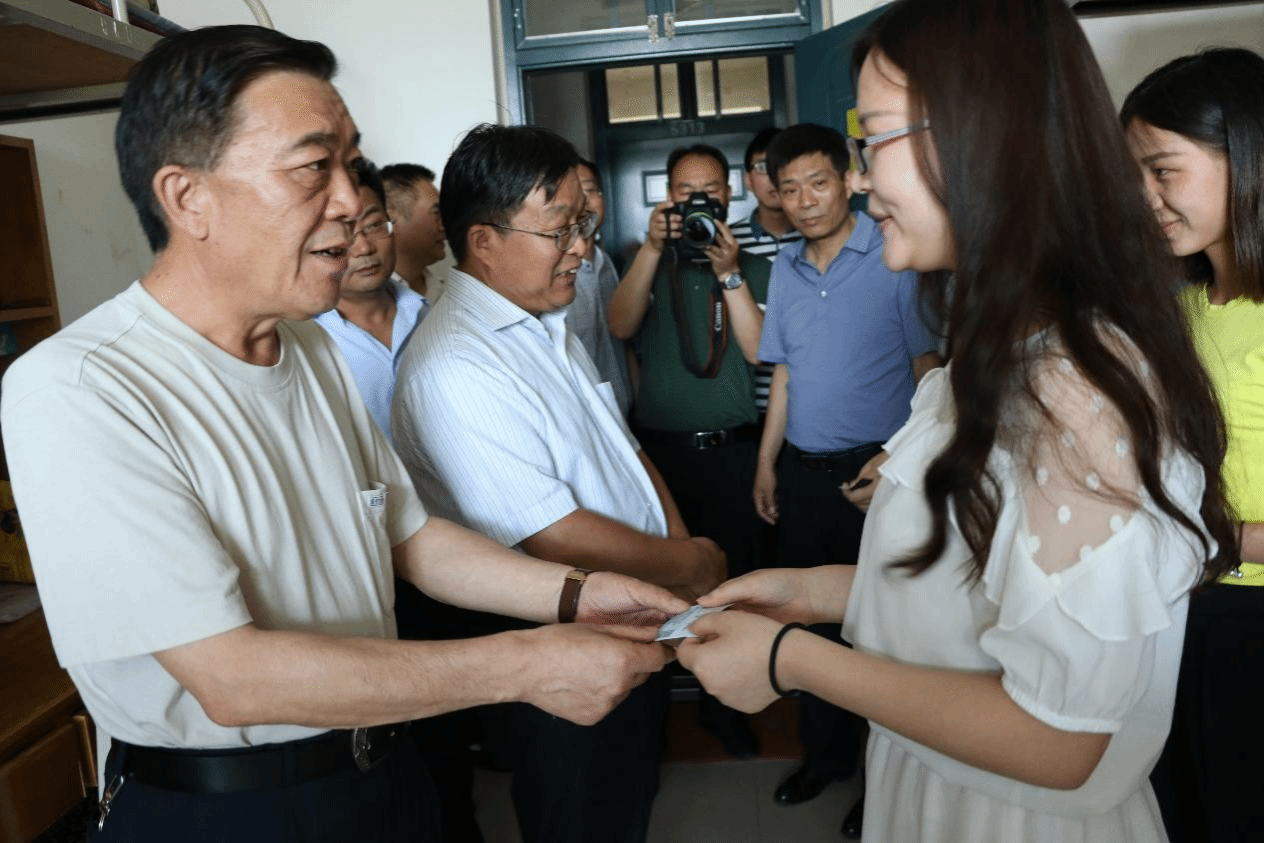 走访过程中,领导们关心了解毕业生的升学就业状况,询问她们的困难和需求,鼓励她们在新的人生起点上继续努力,踏实学习,将来投身教育,开拓更广阔的天地,取得更优异的成绩。在5311学霸宿舍,宋文献副书记鼓励考上研究生的同学,要更加勤奋努力,把学校优良学风传承下去。在5314宿舍,当王万鹏副书记了解到有两名毕业生考上研究生,有两名来自青海的毕业生立志回西部发展家乡教育事业时,他鼓励毕业生要努力工作,为改变西部教育面貌做出贡献,为母校增光添彩。最后,领导们为毕业生送上水杯,书包,车票等物品,同学们纷纷表示感谢。