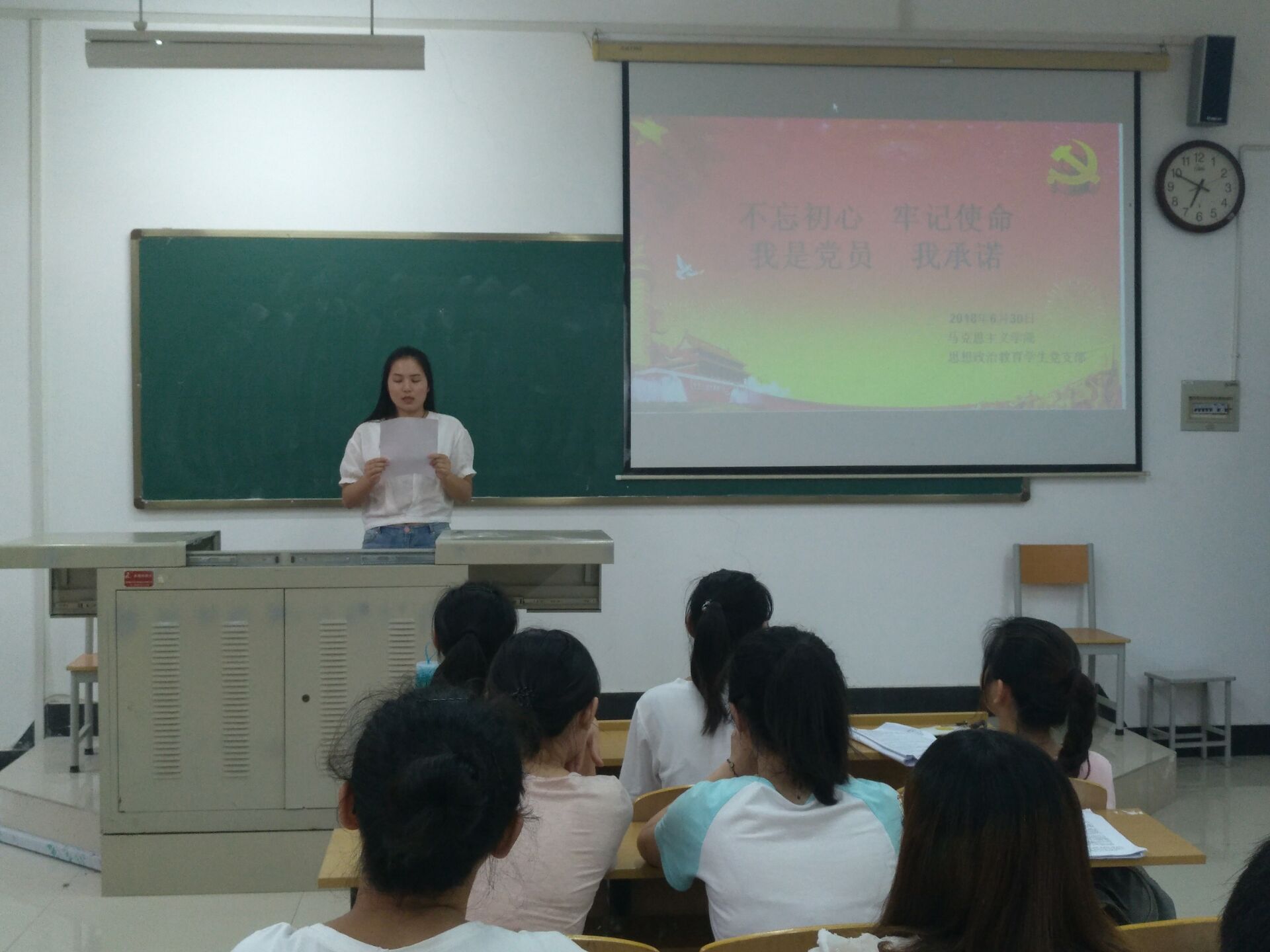 6月30日晚,马克思主义学院思想政治教育学生党支部开展以“不忘初心,牢记使命,我是党员,我承诺”为主题的“七一”建党节党日活动。