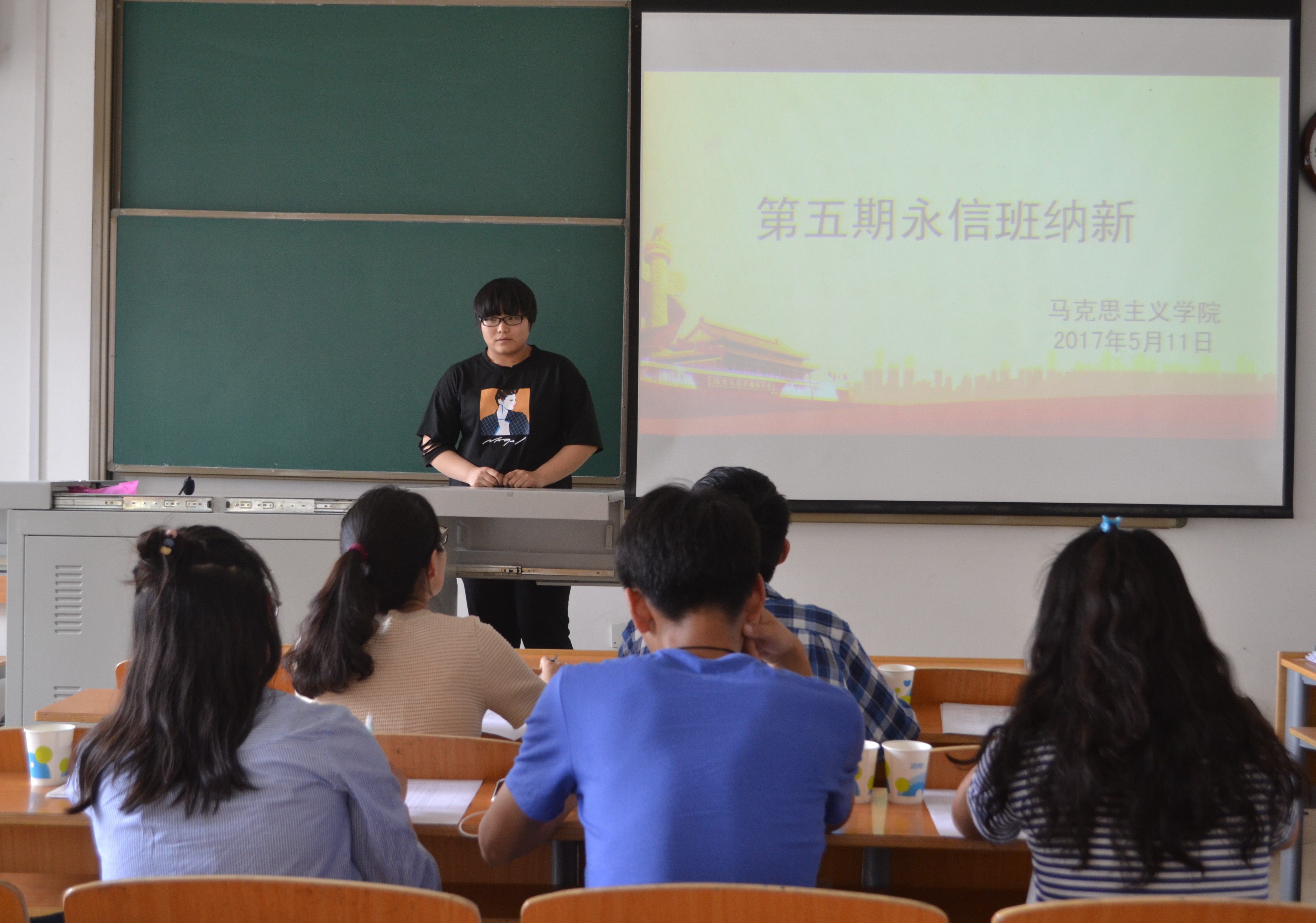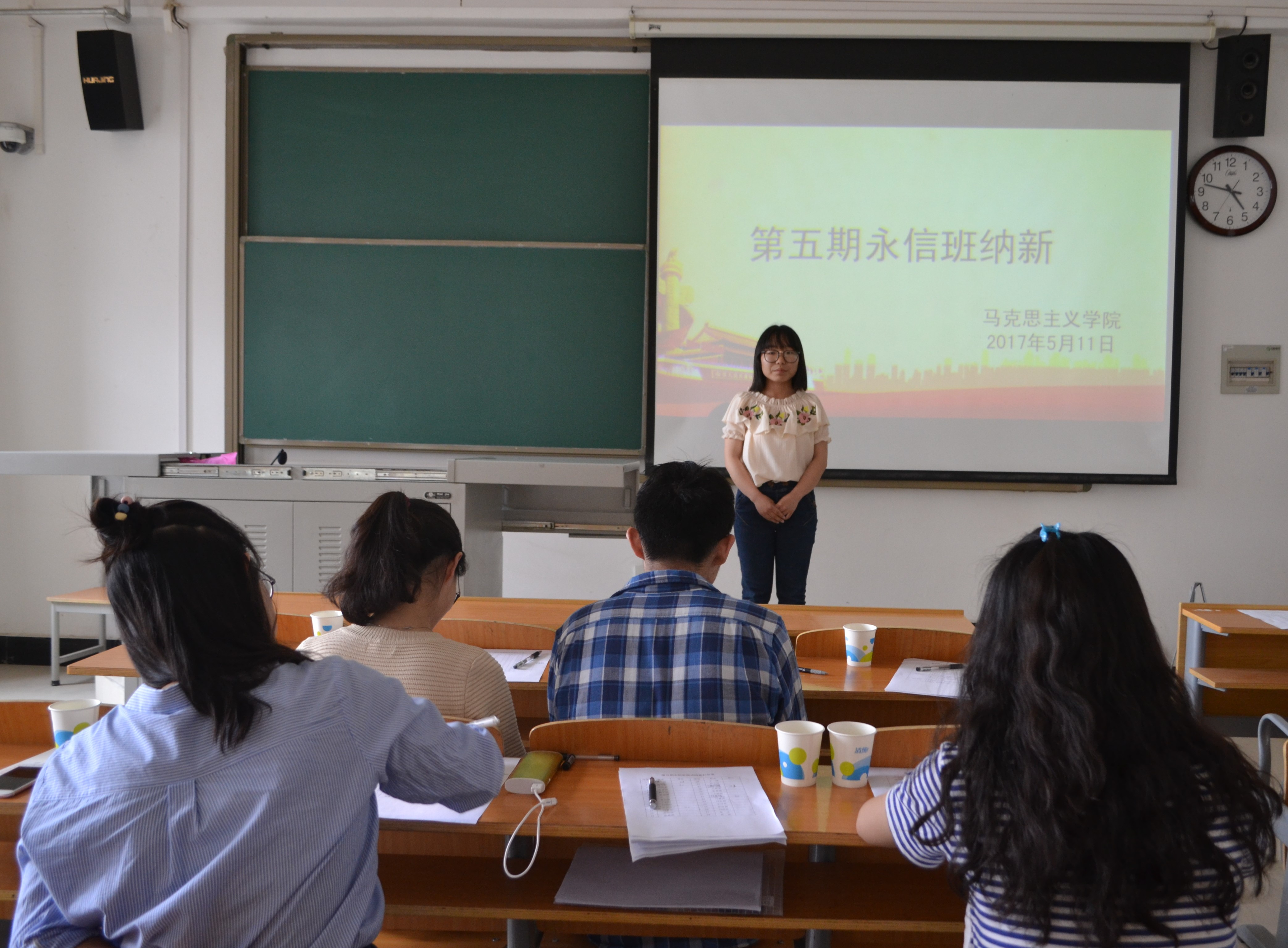 5月11日下午,我院于A3-307教室进行第五期永信班纳新面试。我院团总支书记张宁、第三期永信班学员时啸鸽、第四期永信班学员金星宇、黄丹丹、郭照杰、张苗苗担任评委。