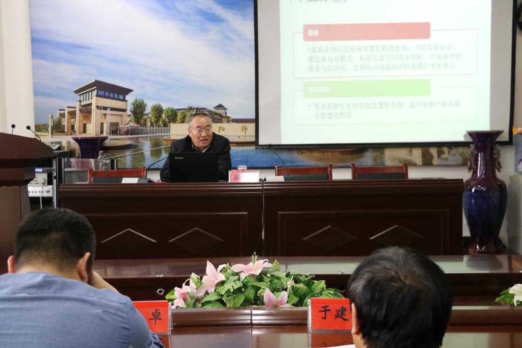 在两个小时的授课中,梁留科校长全面讲解了当前互联网+时代、高速时代、大健康时代、自游时代、旅游+时代、双创时代、新经济时代的特点,分析了新时代带给旅游发展的新机遇和新矛盾。他认为,十九大胜利召开,标志着我国进入了中国特色社会主义新时代,我国社会主要矛盾已经转化为人民日益增长的美好生活需要和不平衡不充分的发展之间的矛盾,这是我国发展新的历史方位。旅游业作为提高人民生活质量的第三产业,在满足人民日益增长的美好生活需求方面发挥着重要作用。全域旅游是我国旅游产业发展的重大战略导向,是一个全新概念,在新时代背景下,只有进一步完善、发展全域旅游,才能最大限度满足大众旅游时代人民群众消费需求的新变化。 同时,梁留科校长结合洛阳实际,对洛阳市如何挖掘发展历史文化元素、打造具有洛阳特色的国际旅游文化名城进行了探讨。