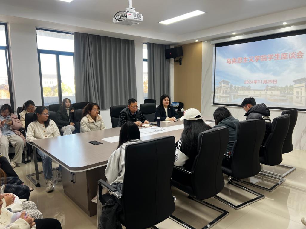 为搭建师生沟通交流的平台,倾听同学们关于学习生活等方面的现实问题和对学院的意见建议,助力学院高质量发展,11月29日,马克思主义学院在A3-407会议室举办本科生师生座谈会。党委书记吕鹏、党委副书记朱玉晓以及学生代表40余人参加。座谈会由朱玉晓主持。