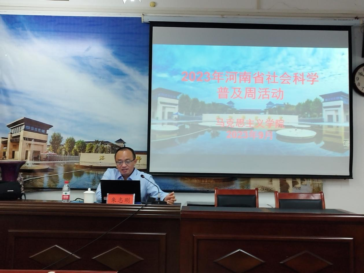 为贯彻《河南省社会科学普及条例》,扎实开展普及周活动,9月13日上午,我院邀请江汉大学马克思主义学院朱志刚教授,在A3-305进行了一场题为《中国式现代化与人类文明新形态》的学术报告。报告会由副院长牛子宏主持,马克思主义学院部分教师和学生现场聆听了报告。