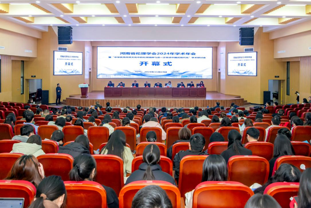 为学习贯彻党的二十大和二十届三中全会精神,深入研究宣传阐释习近平文化思想,坚定文化自信自强,建设中华民族现代文明,用党的最新理论指导中国式现代化建设,11月23日—24日,河南省伦理学会2024年学术年会暨“中华优秀传统文化中的伦理精神与进一步推进中国式现代化”学术研讨会在我校举办。本次活动由河南省伦理学会主办,《中州学刊》杂志社指导,洛阳师范学院马克思主义学院,以及河南省高等学校人文社科重点研究基地——科技与文化研究中心及道德与文明研究中心联合承办。