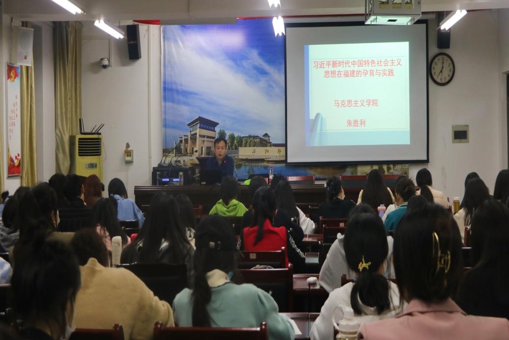 福建是习近平新时代中国特色社会主义思想的重要孕育地和实践地。习近平总书记曾在福建工作17年半,在经济、政治、社会、文化、生态文明和党的建设等方面开创了一系列重要理念和重大实践,朱胜利结合具体实例给同学们进行了深入浅出的讲解。