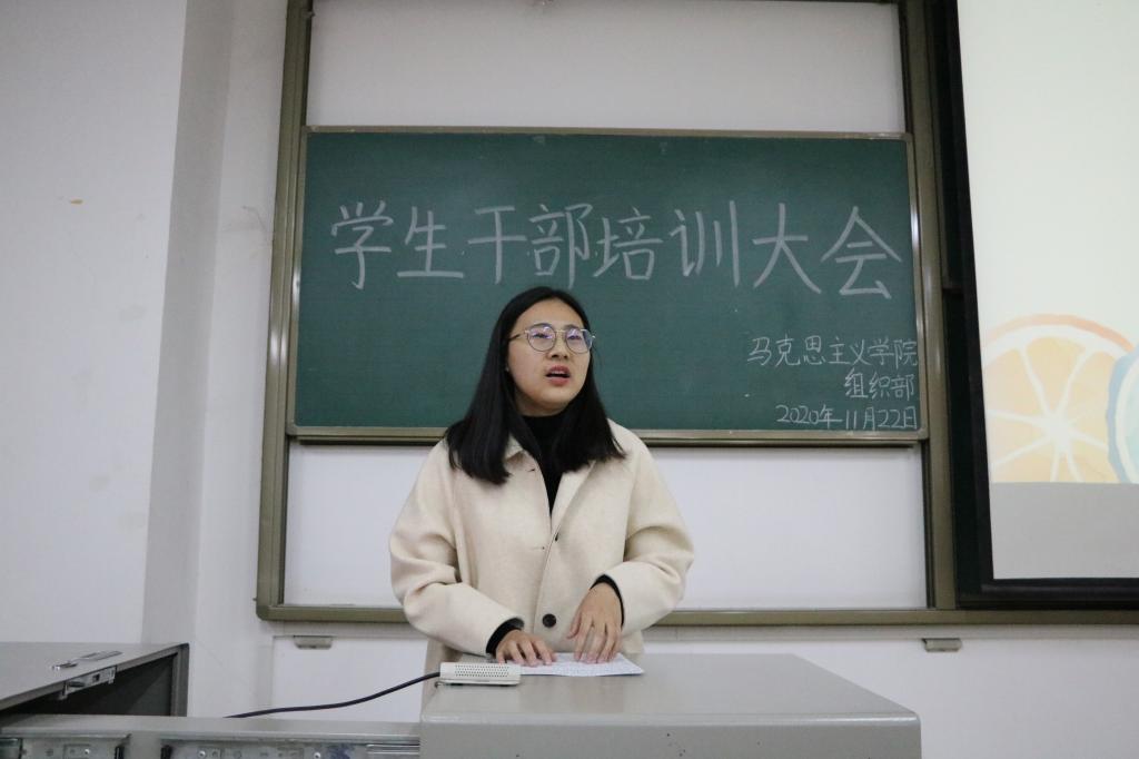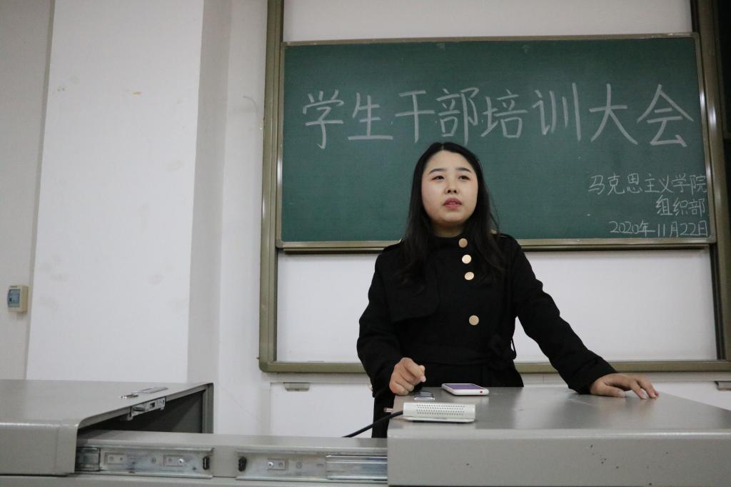 闫晓婷从三个方面进行阐述。第一是正确意识的接收与传播,她通过引用“键盘侠”这一例子,希望大家在面对一些错误看法时有自己的见解与看法,不传播错误信息。第二是态度,她认为,作为学生干部工作可能相对较多、会有一定压力,但在工作中要将“态度”二字贯穿始终。第三是团队精神,她希望大家共同努力为马克思主义学院服务。接下来,刘晓庆围绕学生干部的礼仪这一主题进行讲解。她结合自身经验讲述了不同场合学生干部应该如何做,比如:开会需要提前到场,开会期间尽量不要玩手机;在办公室值班首先要敲门等等。同时,刘晓庆希望大家兼顾自己的成绩,“学生干部”,学生在前,干部在后,大家为院系服务的同时也要努力学习,成为更优秀的自己。此次培训会在同学们的积极交流中结束。
