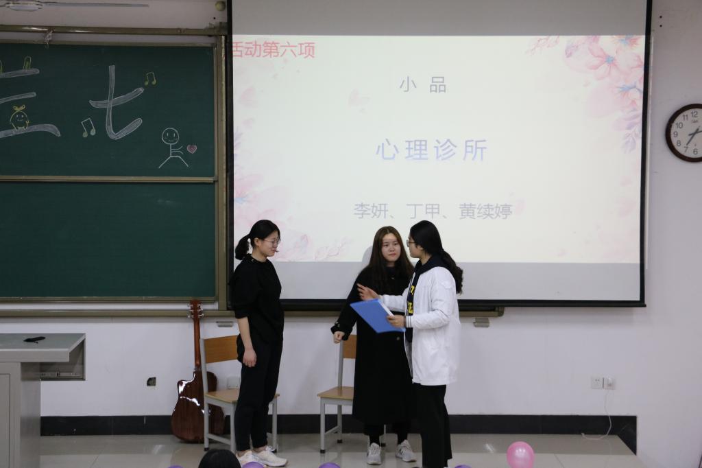 女生节前夕,在女生心理部部员的组织下,女同学们在便利贴上写下了自己的小心愿,并由男生随机抽取实现愿望,为其送上节日祝福。女生节当晚,首先,男生们满怀着祝福为每一位女生都送上了他们精心制作的千纸鹤、玫瑰花、爱心等折纸;接着,舞蹈、小品、唱歌、乐器等各种各样精彩的节目表演赢得台下阵阵掌声,整个现场充满了欢声笑语;节目之余设有“你演我猜”游戏环节,通过与台下女生的互动,更是将现场气氛推向高潮。最后,全体同学一同观看了主题影片并为本次“女生节”画上了一个圆满的句号。
