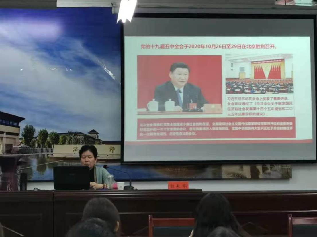 会议伊始,郭长华对党的十九届五中全会进行讲解,对同学们贯彻认识党的十九届五中全会精神做了很好的铺垫。接下来她向我们介绍了”“十三五”所取得的成就,在这些成就中,我们深刻地体会到习近平总书记“我将无我,不负人民”的苦干精神。正是在这种艰苦奋斗精神的带领下,我国的综合国力取得举世瞩目的成就,人民的生活更是辉煌向上。如今在”十四五”来临之际,郭长华向我们介绍了这一阶段的目标与规划的蓝图,这为同学们提供了更明确的奋斗目标。