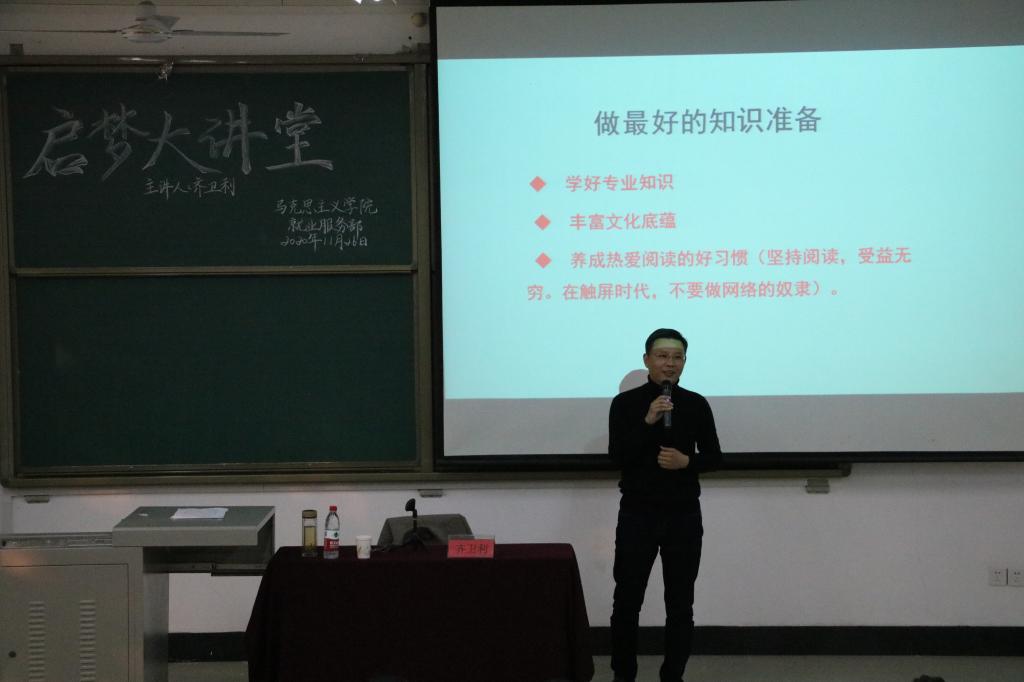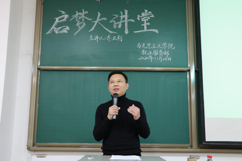 凡事预则立,不预则废。为提高同学们的处事水平和学习能力,11月26日下午,我院“启梦大讲堂”第二讲在A3-114教室顺利开讲。讲座邀请了知名校友齐卫利老师担任主讲人,2019、2020级学生代表积极到场聆听讲座。