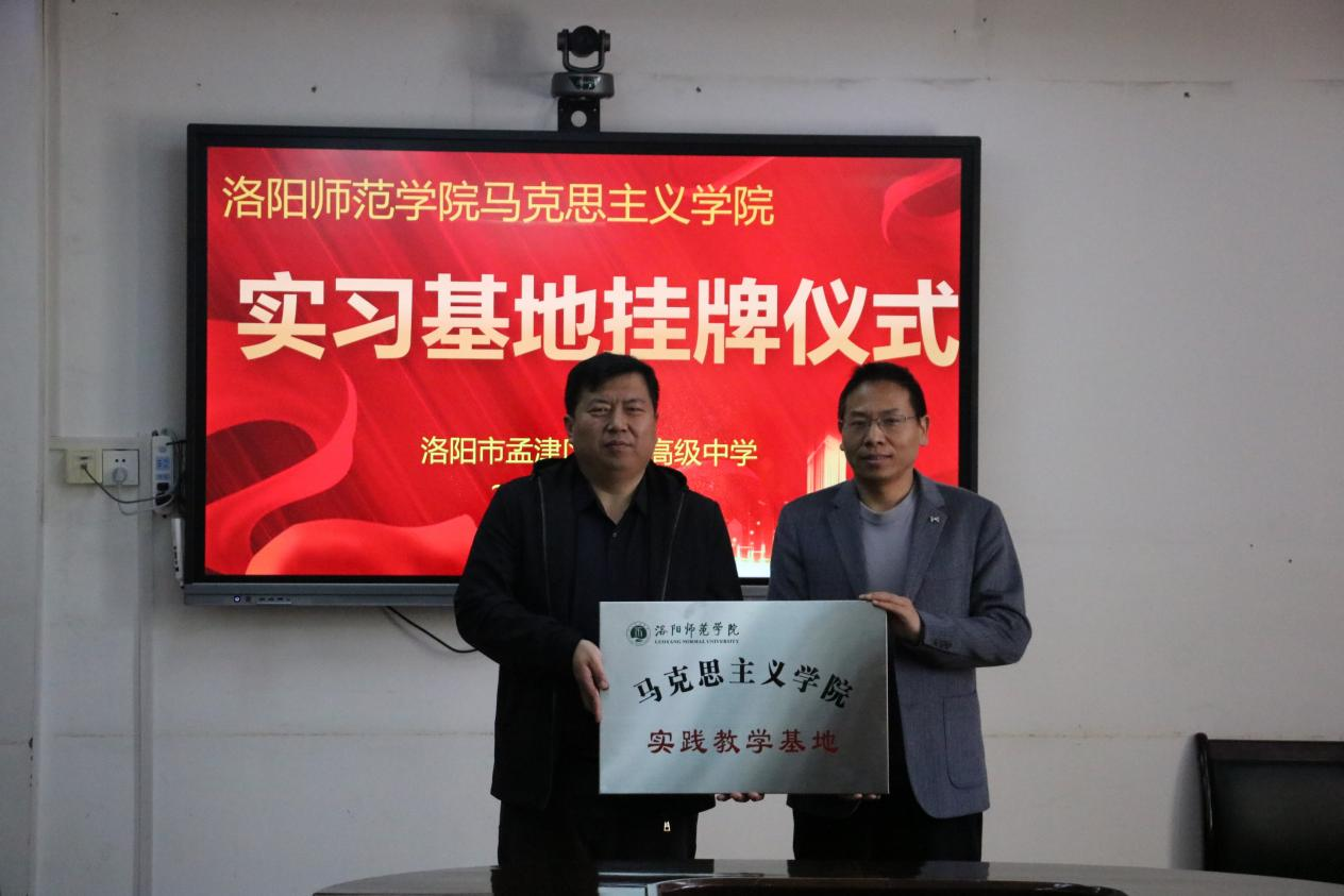 洛阳市孟津区第二高级中学孙重社书记对我院一行的到访表示热烈欢迎。座谈会上,他介绍了第二高级中学的教学发展、人才需求以及未来规划等基本情况,表示期待今后与洛阳师范学院开展各方面的交流合作。吕鹏则向第二高级中学的领导老师们详细介绍了洛阳师范学院马克思主义学院关于人才培养、实习就业、产学研合作等方面的规划和发展方向。他强调要更加注重双方合作交流,充分发挥双方优势资源,达到双方期许。经过深入交流,双方签署了共建“教学实践基地”合作协议,并举行了实践教学基地签约暨挂牌仪式。