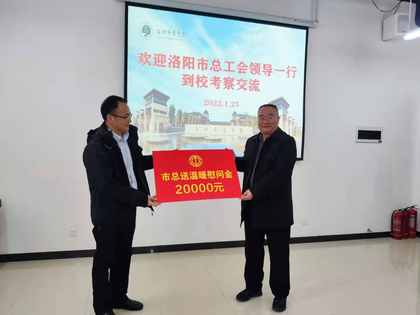 1月25日上午,洛阳市总工会副主席贾锁文等一行三人到我校慰问教职工。校长梁留科和相关部门领导老师参加慰问座谈会。