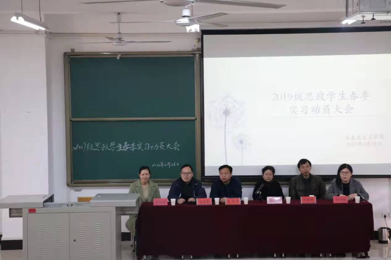 2月28日上午九点,我院在A3-114教室召开2019级思想政治教育专业学生春季实习动员会。院长郭长华,党委书记朱胜利,副院长吴胜锋,副院长李发亮,党委副书记朱玉晓出席会议,2019级思政专业学生到场参与,会议由王向华副教授主持。