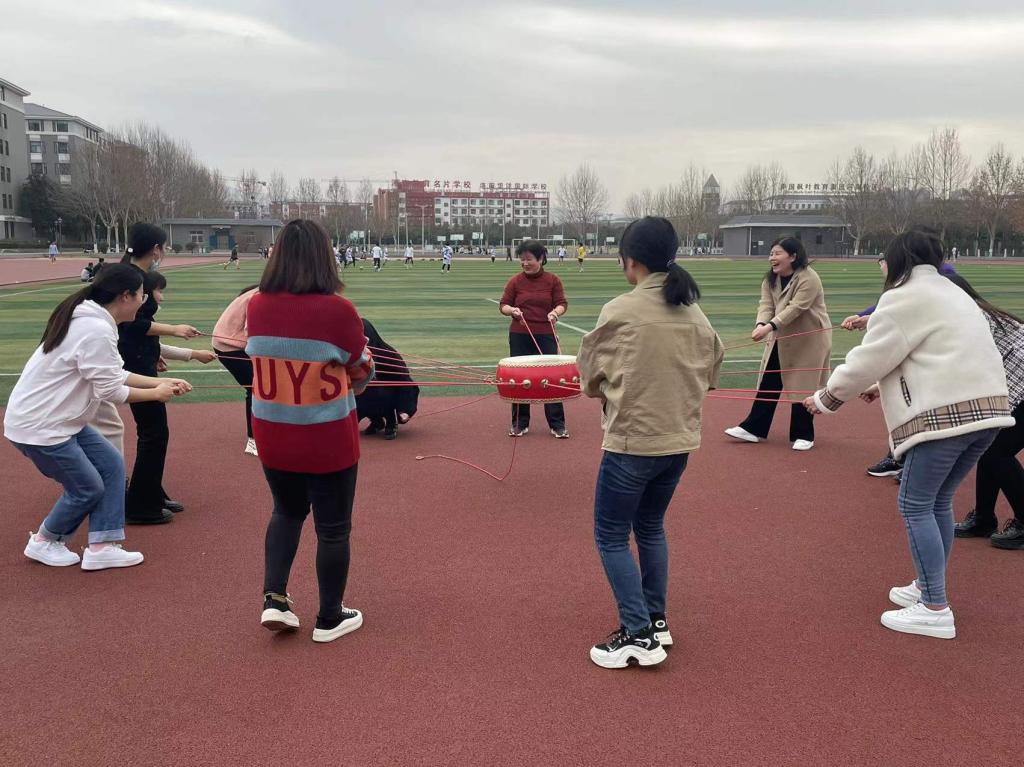当日15点,运动会在桃园操场正式拉开帷幕,本次活动主要由同心鼓、跳长绳、气排球等趣味浓厚的集体项目组成。在我院院长郭长华、党委副书记朱玉晓的带领下,我院全体女教职工热情饱满地参与其中。操场上,老师们相互配合,数着节拍跳跃律动,热情地挥洒着汗水,充分展示了当代女性蓬勃向上的风采。整个活动中,操场上不时传来清脆悦耳的笑声,老师们团结一致,互相加油鼓劲,共同度过了一个快乐、和谐、温馨、难忘的节日。