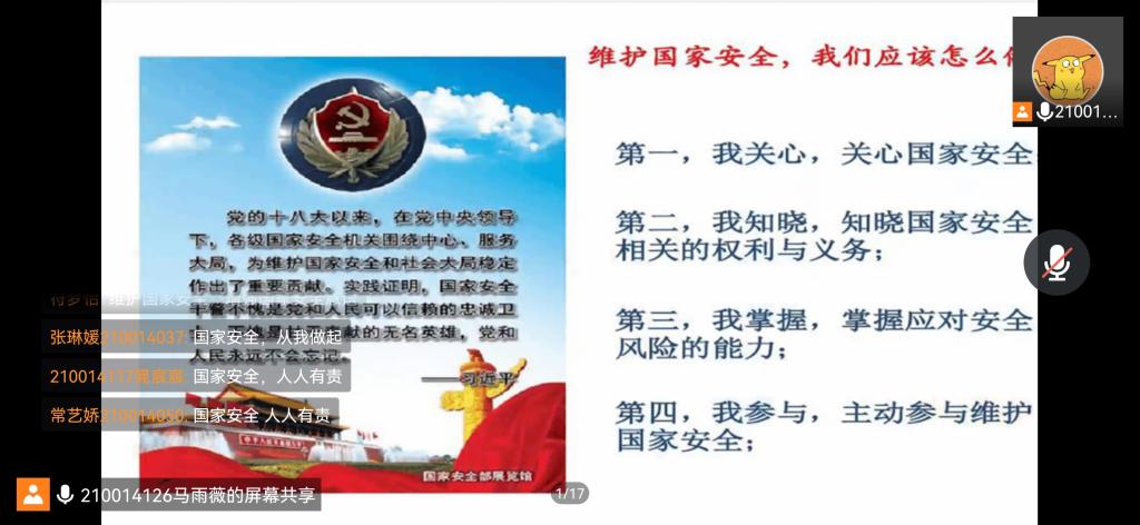 4月9日,我院在2020、2021级中集中开展“国家安全教育日”主题班会,各班同学参加会议。