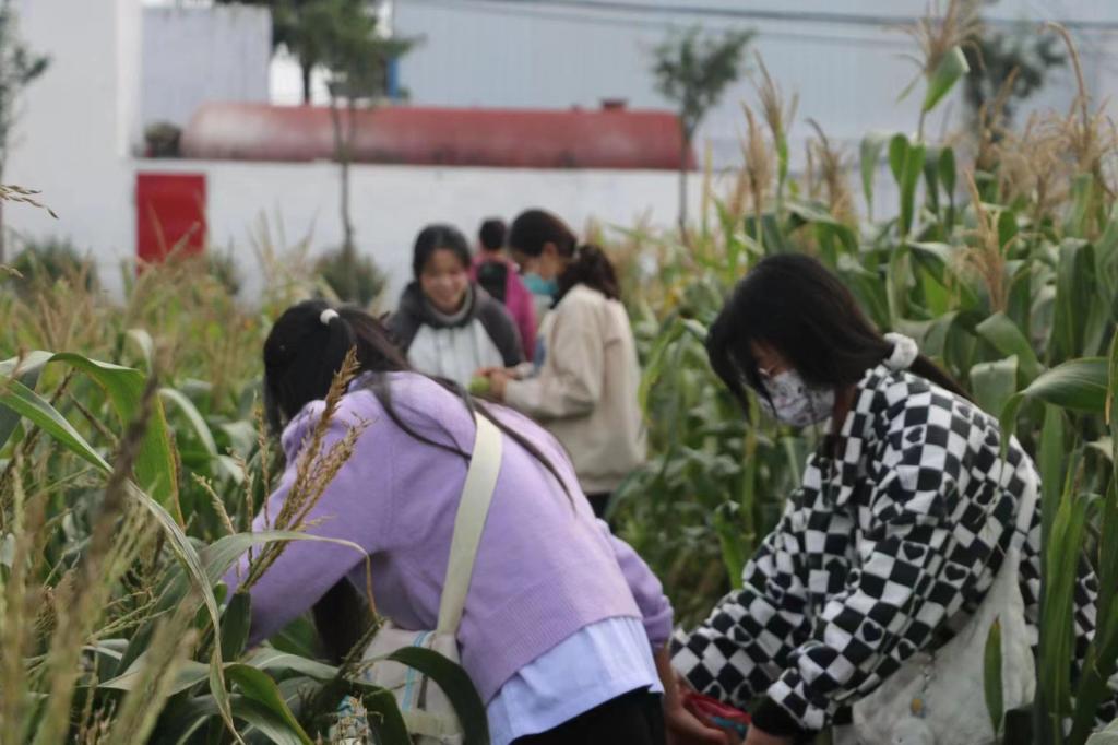 河南君品生态农业开发有限公司负责人李凯伟首先给同学们介绍了公司发展和运营情况,随后带领学生参观玉米种植园,重点给学生介绍了鲜食玉米研发和种植情况,喂北村种植基地种植玉米品种有200多种,以鲜食水果玉米为主,清甜爽口,营养丰富;李凯伟还给同学们讲解并示范了掰玉米的动作要领和注意事项。