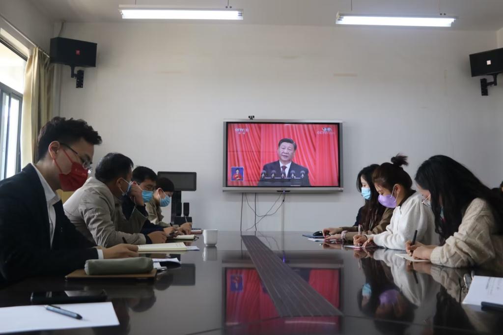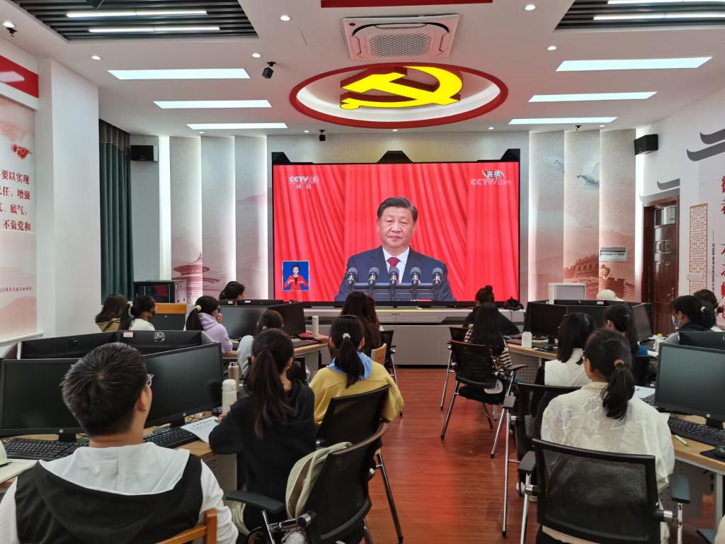 根据学院安排,学院领导班子和教师代表在A3-407会议室,青马工程“永信班”、“青马社”成员以及各年级学生代表在学院305会议室、思政课虚拟仿真实验室、114教室集中观看直播;其他师生通过网络、电视等多种形式自主学习观看,共同见证这一伟大历史时刻,感受团结、奋进的时代脉动。