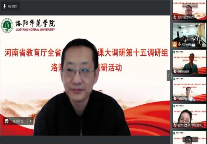 根据2022年度全省高校思政课秋季学期“大听课”“大调研”活动工作安排,11月22日至25日,省教育厅“大听课”“大调研”活动第十五调研组组长、河南省高校思政课教指委《马克思主义基本原理》分教指委委员、郑州航空工业管理学院马克思主义学院院长汪青松等4名专家对我院思政课建设工作进行线上听课和调研指导。
