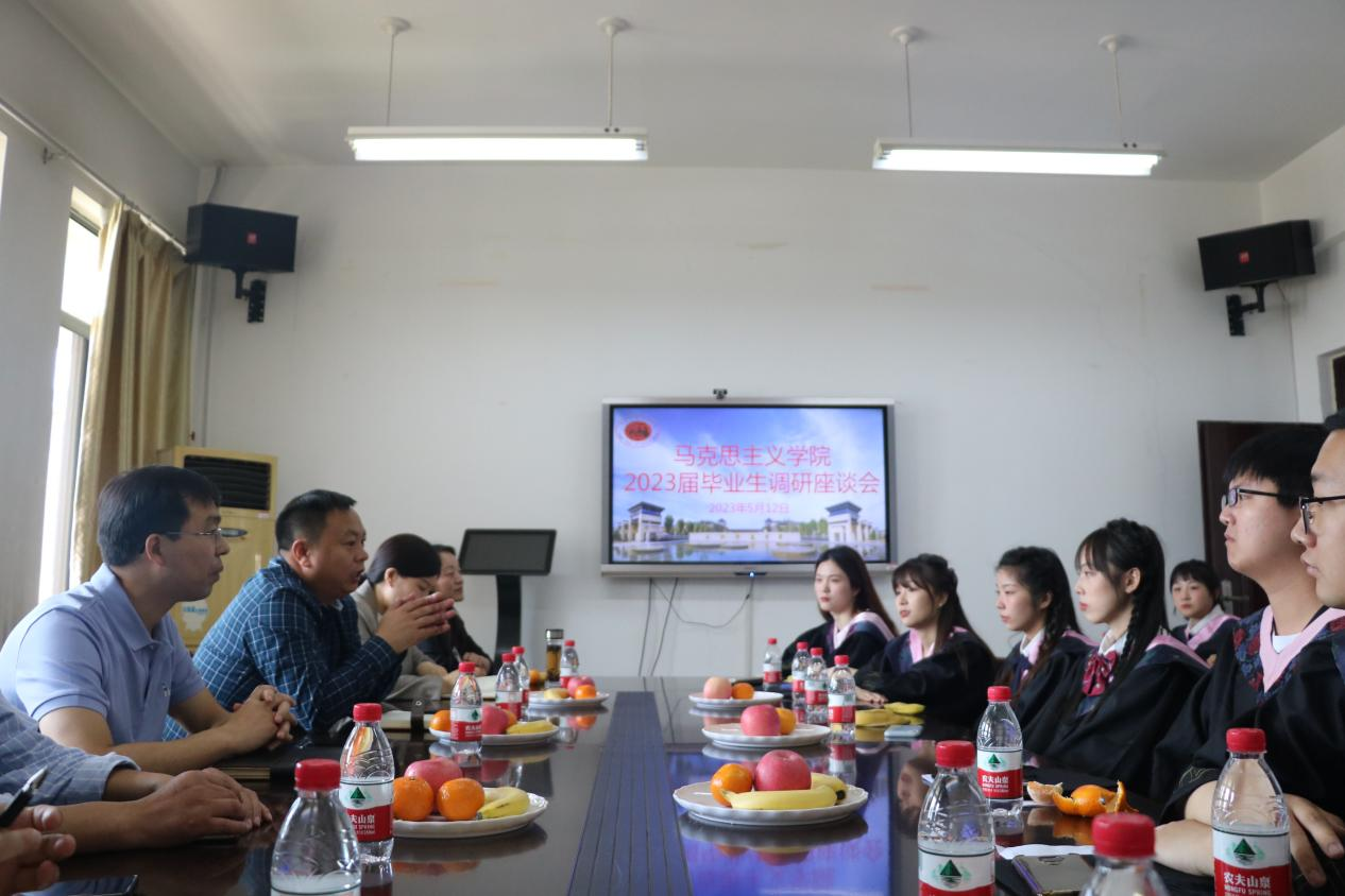 5月12日上午,我院于A3-407教室召开2023届毕业生调研座谈会。院长吴胜锋、党委书记朱胜利、副院长李发亮、牛子宏,思想政治教育系主任王现伟、毕业班班主任张俊红、徐宁,以及2019级20余名学生代表参加会议,会议由我院党委副书记朱玉晓主持。