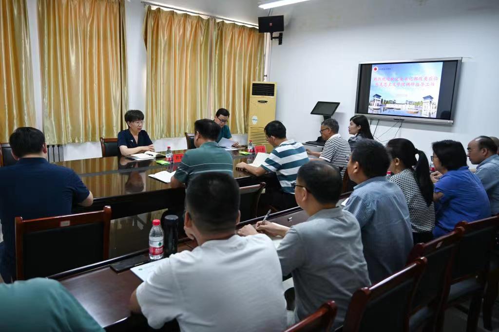 7月4日下午,校党委书记郭改英深入我院调研指导工作。我院班子成员、教研室主任和教师代表参加座谈交流,党政办公室负责人陪同调研。