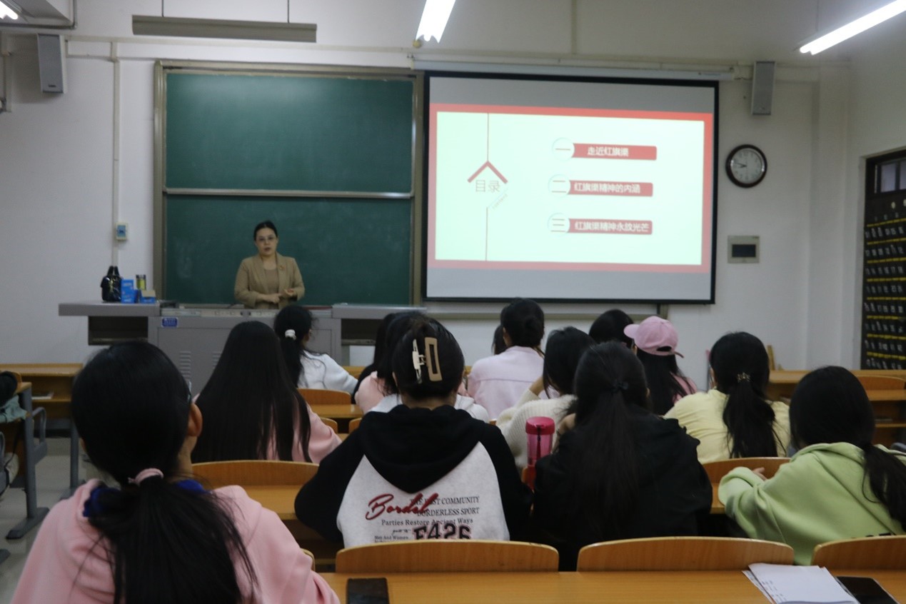 杨正群为同学们详细地介绍了红旗渠的历史背景和精神内涵。她以“自力更生,艰苦创业,团结协作,无私奉献”为主题,列举了任羊成等多位红旗渠建设者的故事,生动地讲述了红旗渠精神的由来、诠释了什么是红旗渠精神。最后,杨正群为同学们讲述了红旗渠精神在当代如何更好地发扬和传承。同学们透过文字和图像,穿越历史,体验到了红旗渠这一伟大工程修建攻坚的艰苦与不易。