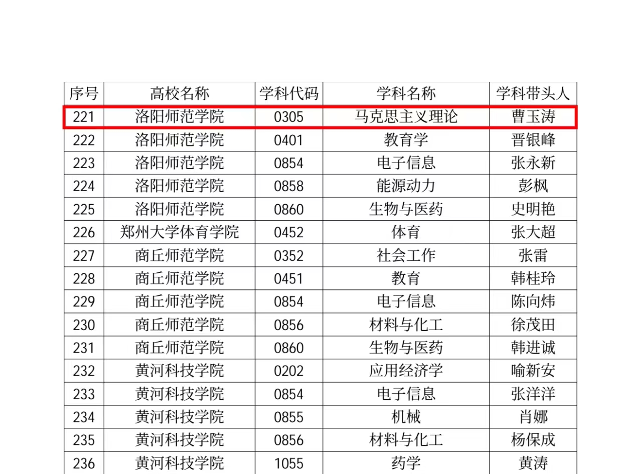近日,省教育厅发文公布新一轮河南省重点学科名单(教研〔2023〕414号),经学院申报、学校推荐、教育厅集中评审,我院申报的马克思主义理论被确定为新一轮河南省重点学科。这是继今年马克思主义基本原理在河南省第九批重点学科验收获“优秀”成绩之后,我院学科建设的又一佳绩。