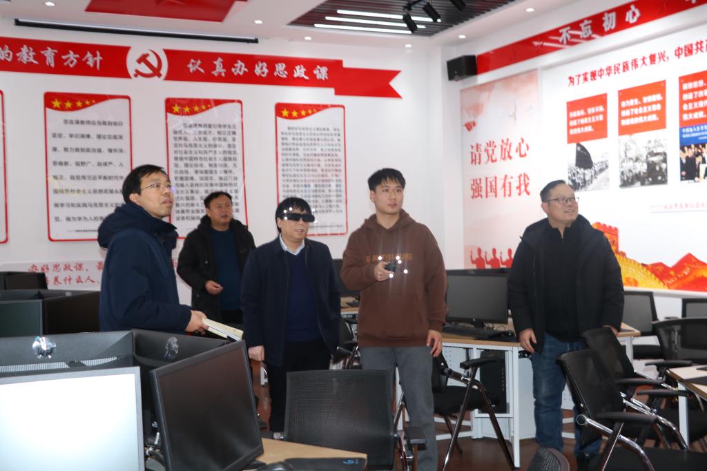 调研期间,郭海明实地查看了虚拟仿真实验室建设和使用情况,并提出指导意见。