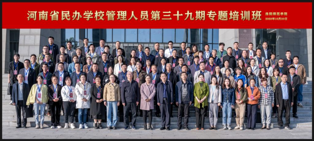 2023年我校承担了河南省民办学校管理人员第十六、第二十八、第三十九期专题培训班。至此,我校负责的洛阳市、平顶山市、三门峡市三个地区民办中小学举办者合计340余人的培训工作圆满完成。