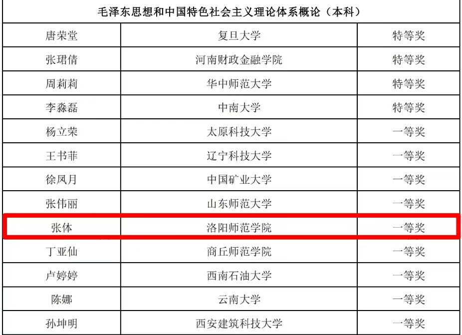 近日,我院教师张体在第三届全国高校思想政治理论课教学展示活动“教学竞赛单元”中荣获本科组《毛泽东思想和中国特色社会主义理论体系概论》课教学展示一等奖。