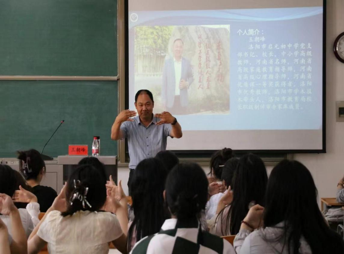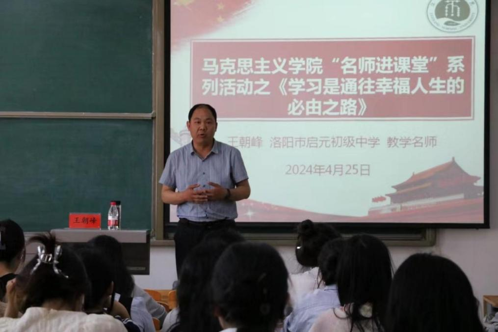 4月25日下午,河南省名师、洛阳市启元初中学党支部书记、校长、中小学高级教师王朝峰在A3-306教室开展讲座,我院2023级思想政治教育专业本科生聆听此次讲座。