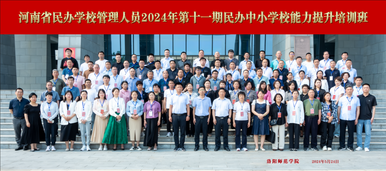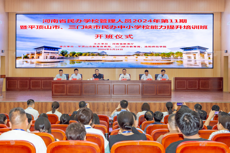 5月24日,河南省民办学校管理人员2024年第11期暨平顶山市、三门峡市民办中小学校能力提升培训班在我校顺利开班。此次培训班由河南省教育厅主办,平顶山市教育体育局、三门峡市教育局和洛阳师范学院联合承办。省教育厅政策法规处(民办教育处)副处长、二级调研员平奇,主任科员金春晖,党委副书记赵海彦,平顶山市教育体育局四级调研员段晓兵,三门峡市教育局总督学吉建辉,继续教育学院院长云林森,马克思主义学院院长吴胜锋及100余名学员参加了开班仪式。开班仪式由吴胜锋主持。