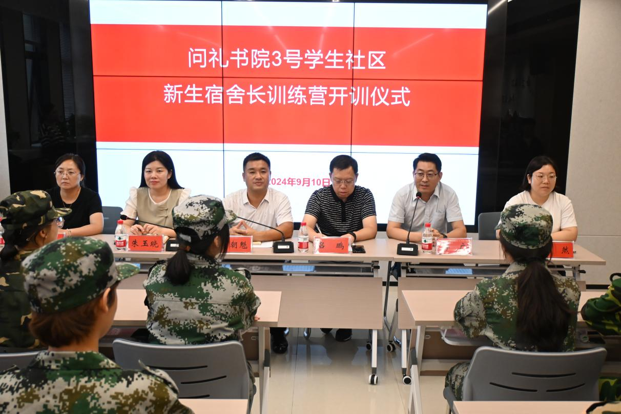 为进一步提升书院社区网格化管理水平,提高书院学生自我管理能力,营造良好社区育人环境,9月10日下午,问礼书院3号学生社区在书院二楼大先生讲堂举办2024级新生宿舍长训练营开训仪式。党委学工部(学生处)副部长(副处长)李广、问礼书院3号学生社区全体领导班子成员、育人导师、生活导师,以及新生宿舍长参加开训仪式。