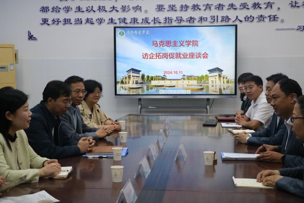 洛阳市启元初级中学校长王朝峰对我院一行的到访表示热烈欢迎。双方就人才培养、实习就业、产学研合作等方面展开了深入讨论。他详细介绍了启元初级中学的发展情况及双方在学生实习就业、师资交流培训等方面的合作情况,表示希望今后在大中小学思政课一体化建设、中小学生研学等方面进一步深化交流合作。吴胜锋表示,洛阳师范学院作为扎根洛阳的百年师范院校,始终坚持培养优秀师资、服务地方发展的目标导向,取得了显著成效。马克思主义学院坚持学校发展的理念和方向,将充分发挥教育教学、学科科研、人才队伍等优势,强化责任担当,提高育人质量,为地方基础教育输送更多的优秀师资。同时,学院将进一步深化与启元初级中学的交流合作,为推动伊滨区教育事业高质量发展增势赋能。