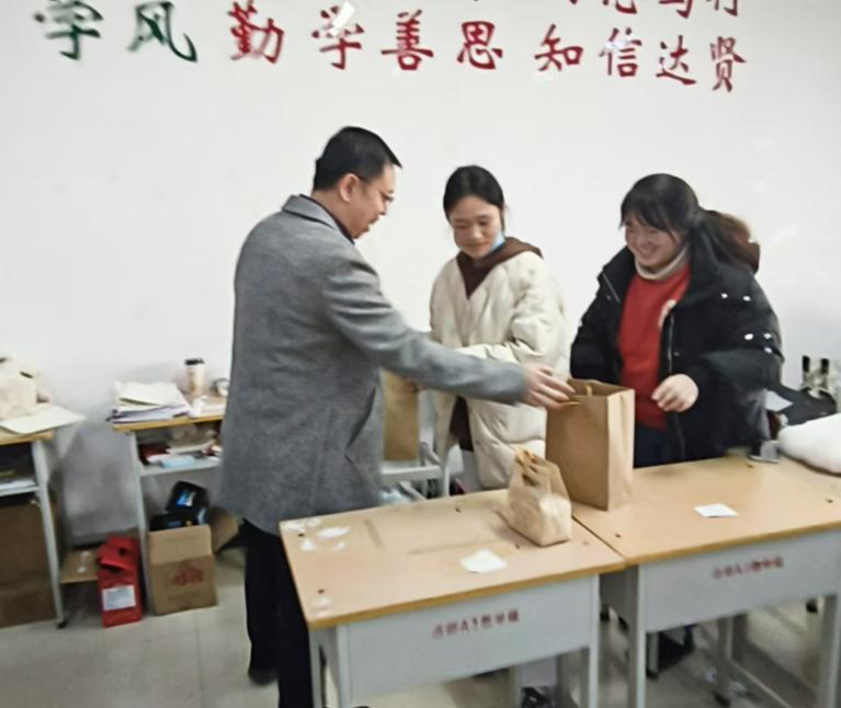 吴胜锋着重强调了备考策略,提醒同学们在冲刺阶段应分清主次,保持良好的学习习惯,同时注重身心健康,以最佳状态迎接即将到来的考试。吕鹏代表学院向全体考研学子致以深切的关怀和诚挚的祝福,高度赞扬了同学们勤奋学习、勇于追梦的精神,鼓励同学们自信昂扬不放弃。随后,学院领导及老师们共同为考研学子发放了精心准备的“考研加油包”,传递着学院对同学们的深切期望和美好祝愿。同学们纷纷表示将不负众望,以更加饱满的热情、更加坚定的信念投入到最后的备考中,努力实现自己的梦想。