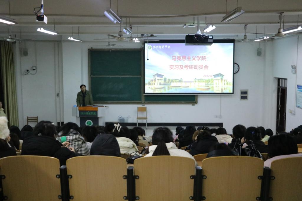1月10日下午,马克思主义学院于A3-114召开2025年实习暨考研动员大会。我院院长吴胜锋、副院长田江太、教师代表徐宁、王向华、谢翠婷、袁培文及22级学生参加会议。