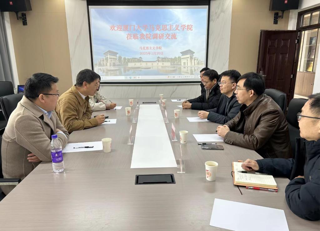 1月20日,厦门大学马克思主义学院党委副书记刘晓峰一行3人莅临我院进行调研交流。我校党委宣传部部长杨会宾主持交流座谈会,马克思主义学院院长吴胜锋、副院长田江太、思想道德与法治教研室主任谷合强、思想政治教育专业教法教研室主任王民选参加交流会。