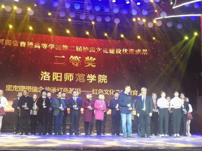 本次活动旨在充分发挥普通高等学校文化传承创新的重要功能,弘扬主旋律,凝聚正能量。经过高校推荐、专家评审等环节,我院申报的“坚定理想信念 传承红色基因”红色文化主题教育项目荣获二等奖,河南大学党委书记卢克平为我校颁发奖杯。