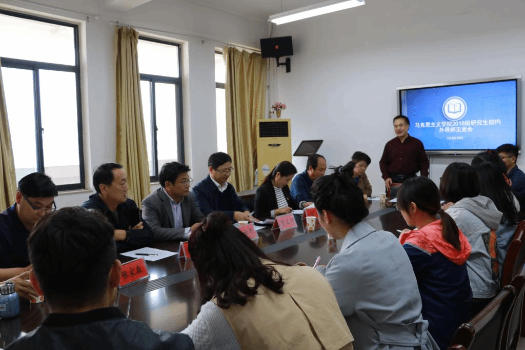 为了进一步加深老师与同学之间认识与了解,拉近师生关系,10月21日下午,我院2018年校内外导师见面会在A3-407会议室顺利召开。出席本次会议的有我院院长曹玉涛、党总支书记赵社民、副院长刘晓、吴胜锋博士、薛妙勤教授、王建设老师、张玲老师、吴秀娟老师、洛阳幼儿师范学校校长张家森、洛阳师范学院附属中学党总支书记韦忠民、洛阳市五十中学校长陈继和洛阳第一高级中学高级教师马仲宏。此次见面会由刘晓副院长主持,2018级全体研究生到场认真聆听。