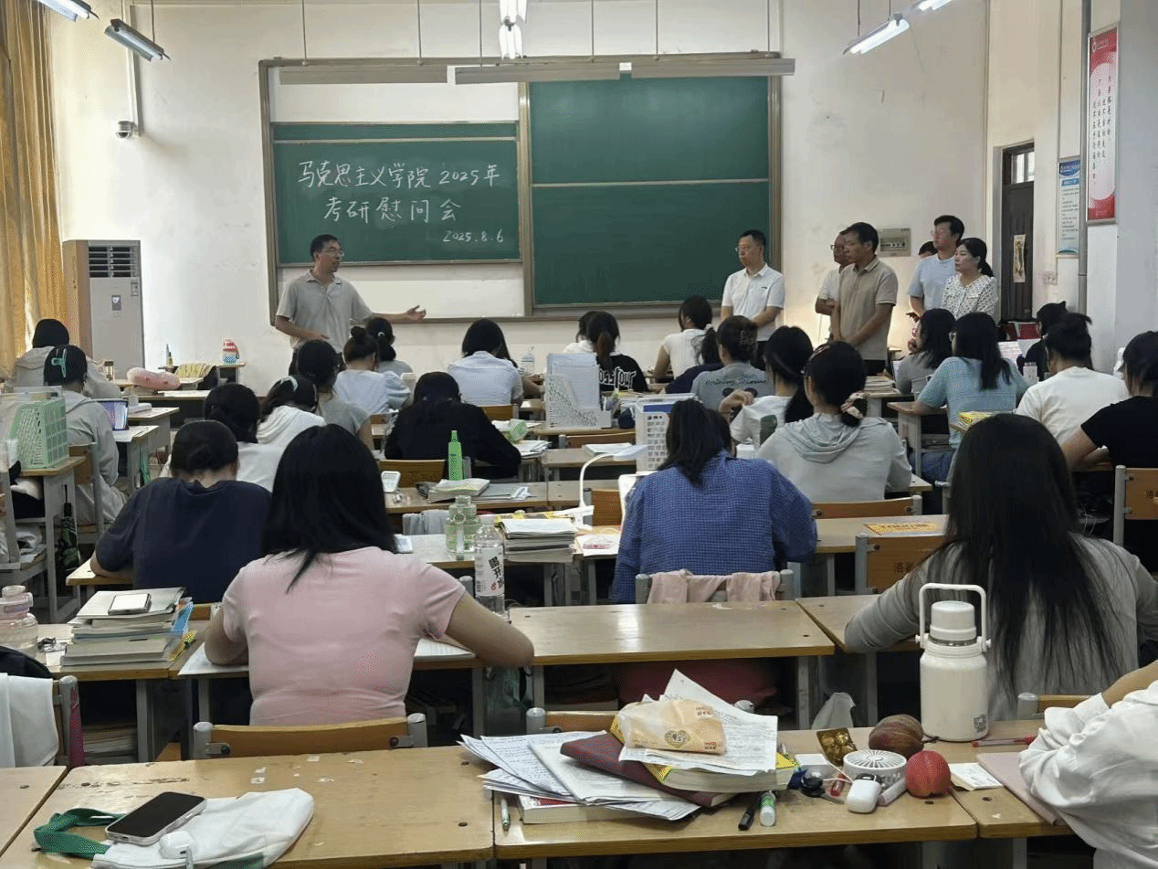 立秋时节,暑气渐消,考研冲刺的号角却愈发嘹亮。8月7日上午,马克思主义学院于A3-106 教室开展考研学生慰问活动,我院党委书记吕鹏、院长吴胜锋、党委副书记朱玉晓、副院长李发亮、田江太、牛子宏以及毕业班班主任谢翠婷共同到场,用实际行动为追梦人加油鼓劲。