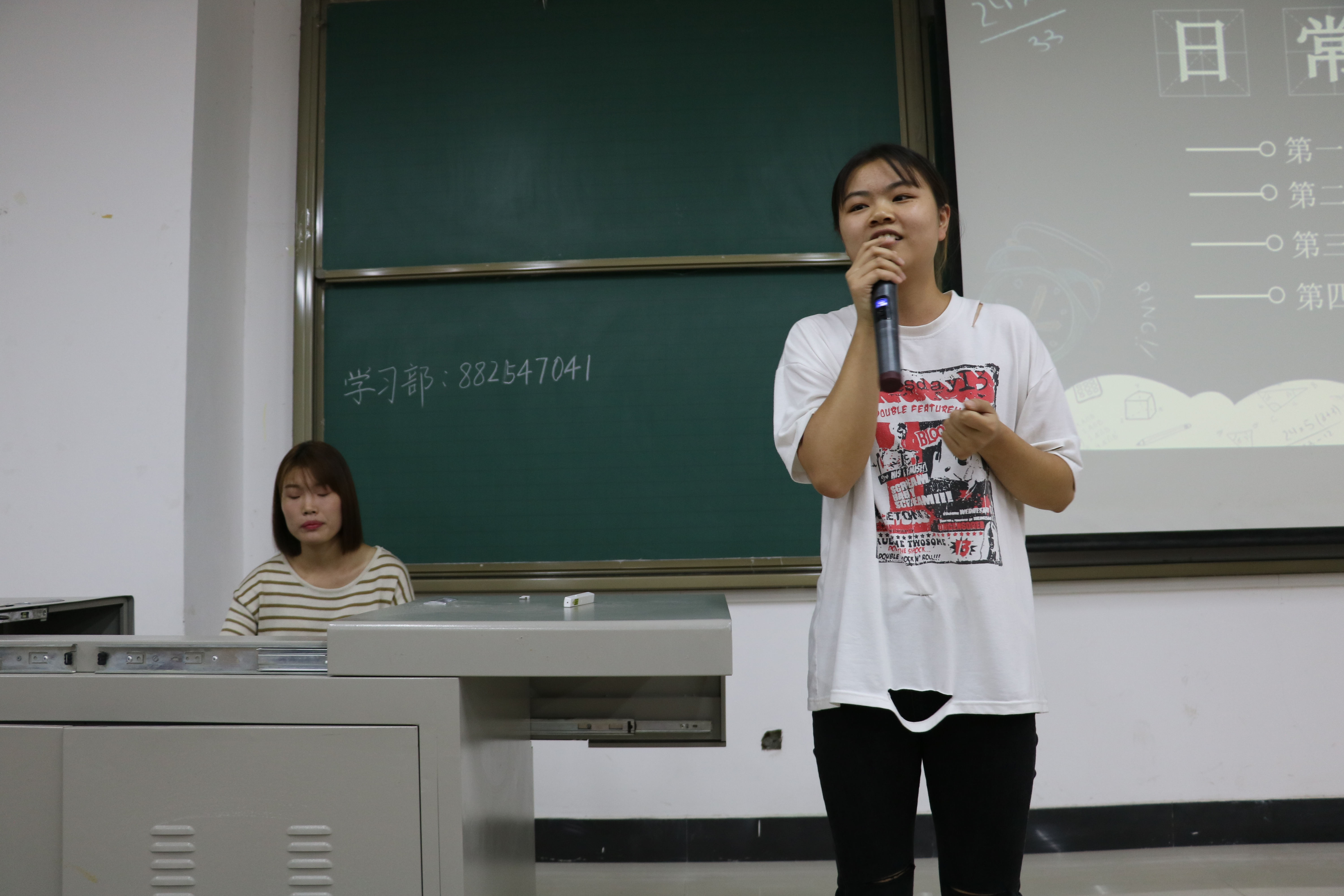 学习部部长郝亚静在欢快的轻音乐中对学习部的工作、成员等方面进行了讲解,使纳新讲解进入一个小高潮;女生心理部部长宋萌萌以随性的姿态给大家讲解女生心理部的具体工作,其中最吸引人的就是高配置的心理辅导站,引得同学们一阵惊呼;党务办成员卢昊天纠正同学们对党务办工作不全面的认识,就“选”、“考”、“会”、“整”四点正确详细的介绍了部门的各个方面。