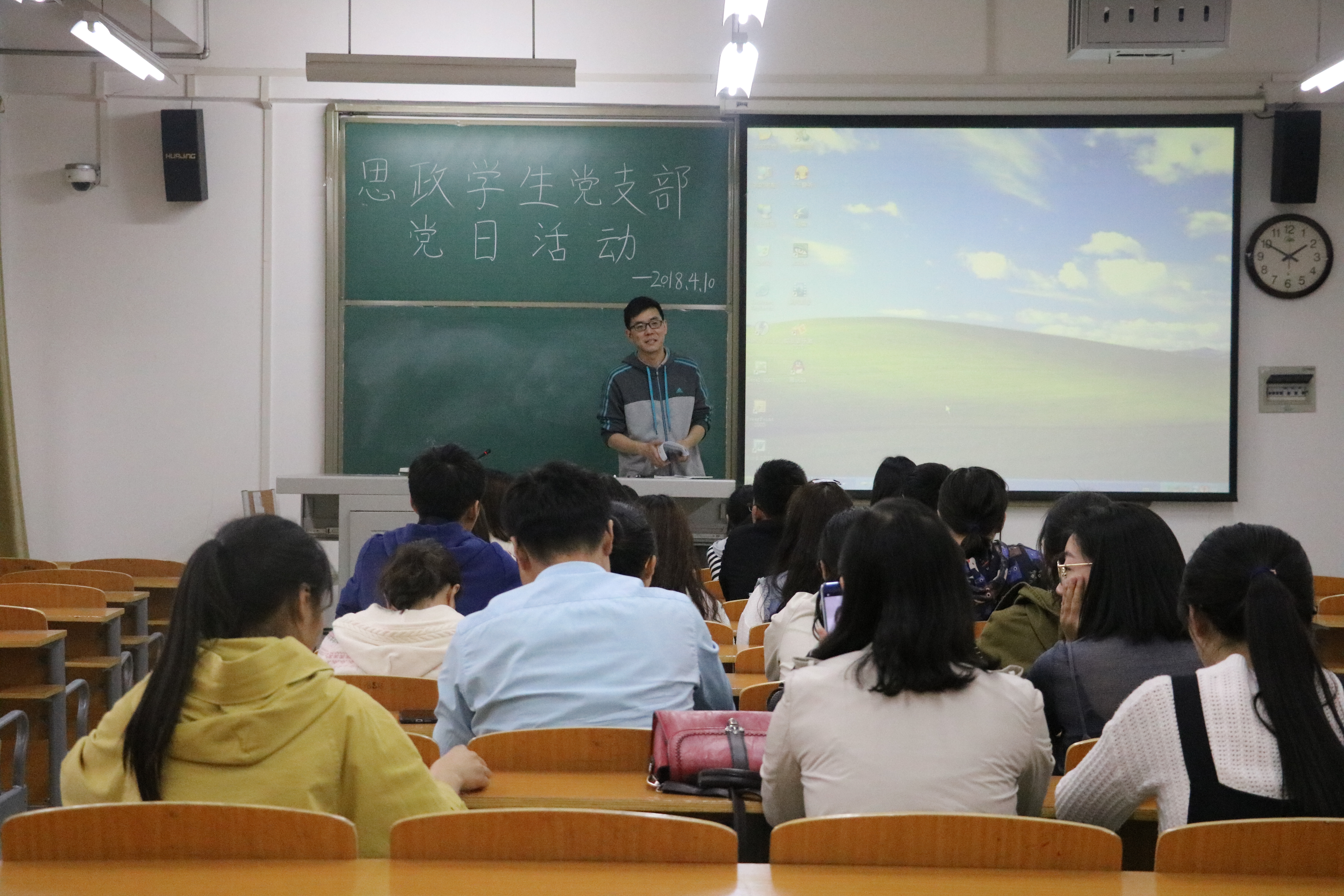 为提升我院学生党员的党性修养,凝聚党员力量,4月10日晚六点,在安明明老师的带领下,我院全体学生党员、预备党员齐聚A3-306教室参加党日活动。