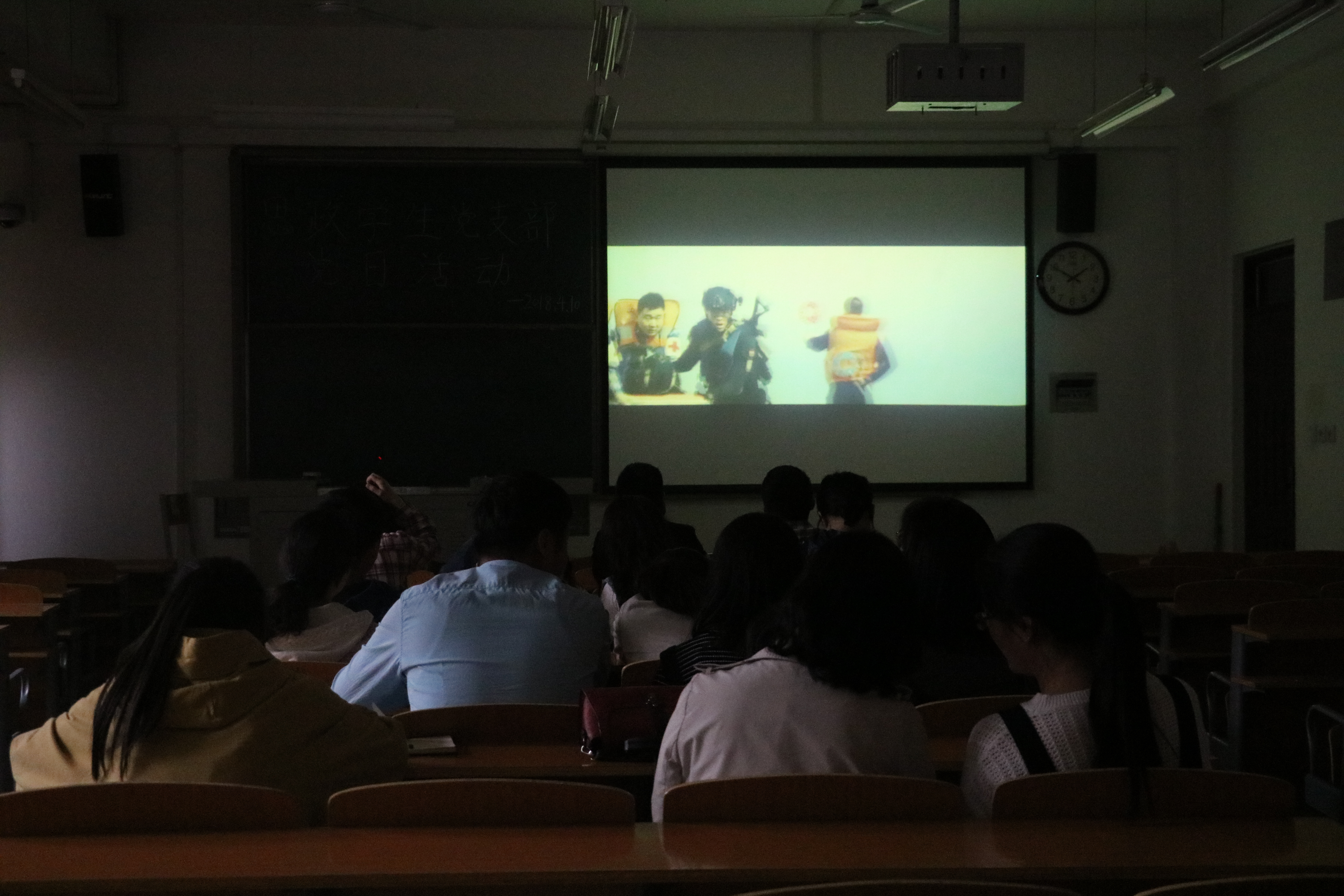 活动伊始,安明明老师向大家转达了上级党组织的通知。首先是党费收缴问题,安老师向大家详细介绍了党费收缴数目的变动,并着重讲述了学生党员党费的变化。安老师强调,2018年是我校“干部作风建设年”,他向大家提出了殷切要求,希望大家能够多关注“干部作风建设年”,积极发言献策,为马克思主义学院更好的发展贡献自己的力量。大家又共同观看了电影《红海行动》,电影的主线讲述的是以国家信念为主导的救援行动,充分展现了中国军人主动承担国际义务、勇于牺牲的大无畏精神,彰显了国家、军队精神层面的强大。