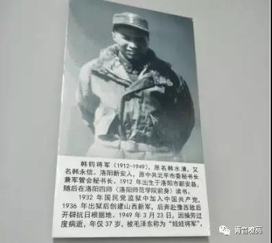 韩钧将军,原名韩水清,又名韩永信。“永信”二字取自永远的信仰。原中共北平市委秘书长兼军管会秘书长。1932年在国民党监狱中加入中国共产党,1949年因劳累过度病逝,年仅37岁。被毛主席称为“娃娃将军”。他曾就读于我们洛阳师范学院,所以我们也能称得上是韩钧将军的校友了。为了纪念他,在我院设有永信班,主要目的是培养具有高度爱国主义热情的青年马克思主义者。
