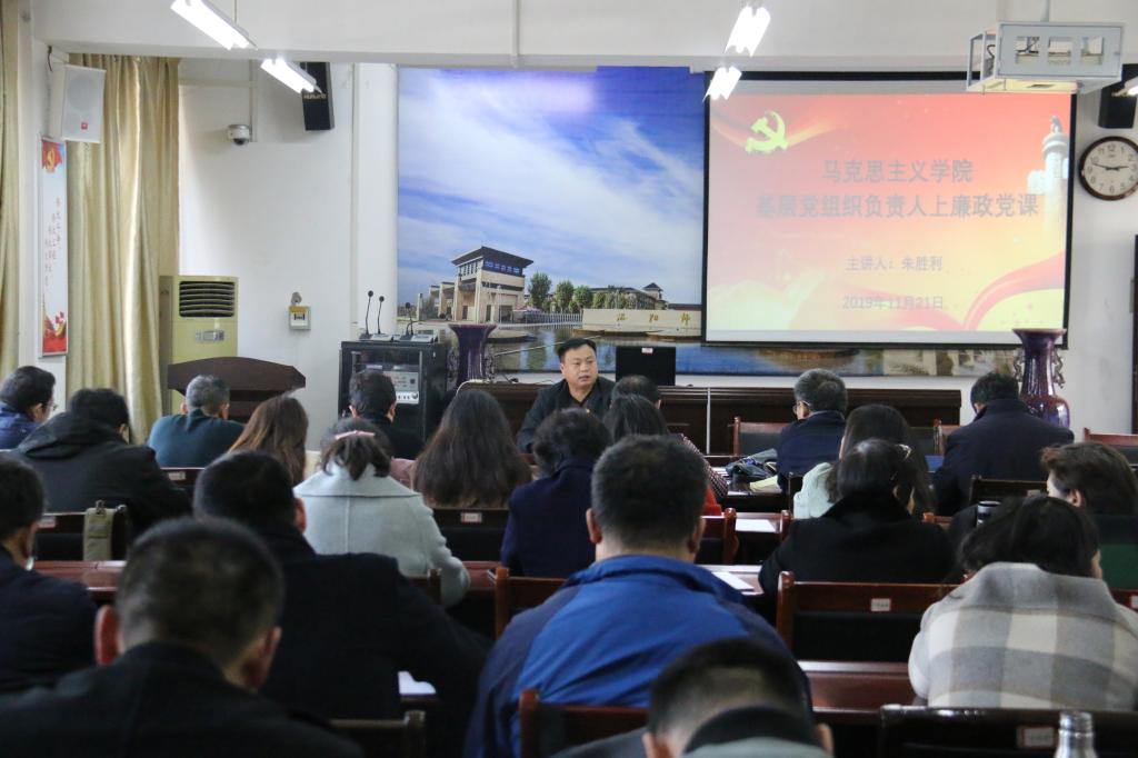 11月21日下午,以“ 讲规矩 守纪律,做政治上的明白人”为主题的廉政党课在305会议室开展,院党委书记朱胜利主讲,全体教师党员参加了本次活动。
