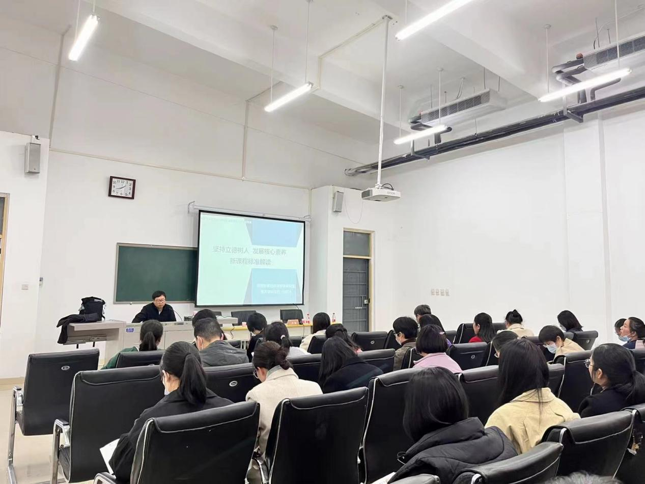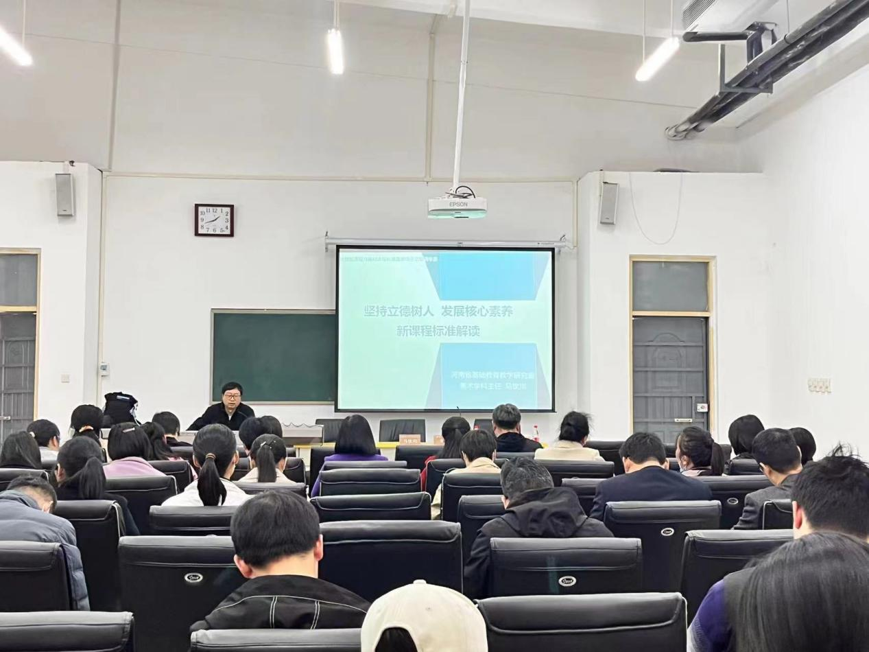 为了优化教育教学方式,落实对学生核心素养的培育。2023年3月4日下午,我院在国培理论教室B402开展题为“新课标背景下的课程教学导向”的培训项目。会议由马饮川老师主讲、各位教师认真聆听,团学干部也积极参加并认真学习。