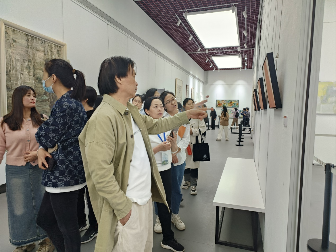 教学活动结束后,李章惠教授带领学员们移步美术馆,一起欣赏了我院部分教师和同学们的优秀作品。学员们看着一幅幅描绘细致,惟妙惟肖的精美画作,称赞声连连不绝。观展过程中,李教授与学员们针对美术教育相关的学术问题进行了更深层次的讨论,学员们纷纷表示收获颇丰、不虚此行。