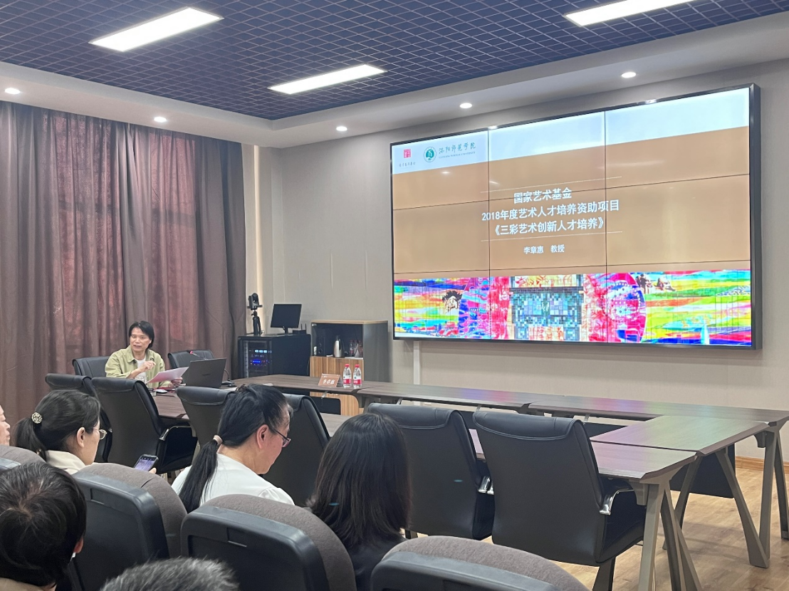 讲座伊始,李章惠教授结合自身学习经历,围绕《三彩艺术创新人才培养》课题展开讲解。随后,李教授给大家讲述了龙门石窟的创造历程并就如何开展以“龙门石窟”为主题的观察绘画进行了详细解答。此外,李教授带领学员们鉴赏了古今中外名画,如北魏《孝子棺石棺现刻》、李昭道《明皇幸蜀图》等优秀作品,引导老师们从诸多名作中品味审美的内涵及意义。