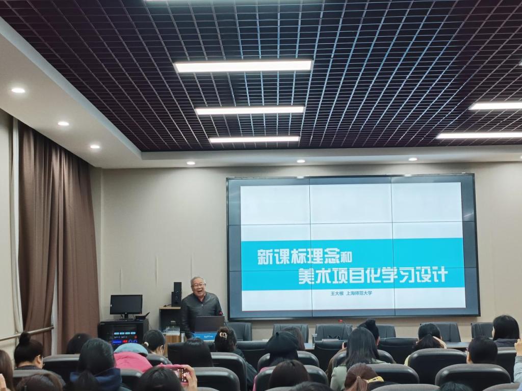 2023年11月10日上午,我院特邀上海师范大学的王大根教授在鸿都楼学术报告厅A111开展题为“新课标理念和美术项目化学习设计”的主题讲座。本次讲座由学院副教授李蕾主持,全体国培学员参与。