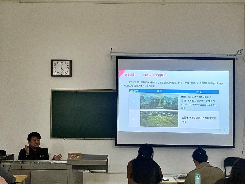 讲座伊始,王元松指出,动画与影视综合运用对于教学的重要性不言而喻,动画和影视作为一种视觉艺术表现形式,具有极强的表现力和感染力。同时,他表示,动画能够吸引学生的注意力,激发他们的学习兴趣。王元松在培训中,深入探讨了动画与影视的相关知识、技能和教学应用,积极分享了自己的新思路和新方法,并带领大家观看教学视频,从中有针对性地引导大家体会镜头语言艺术。