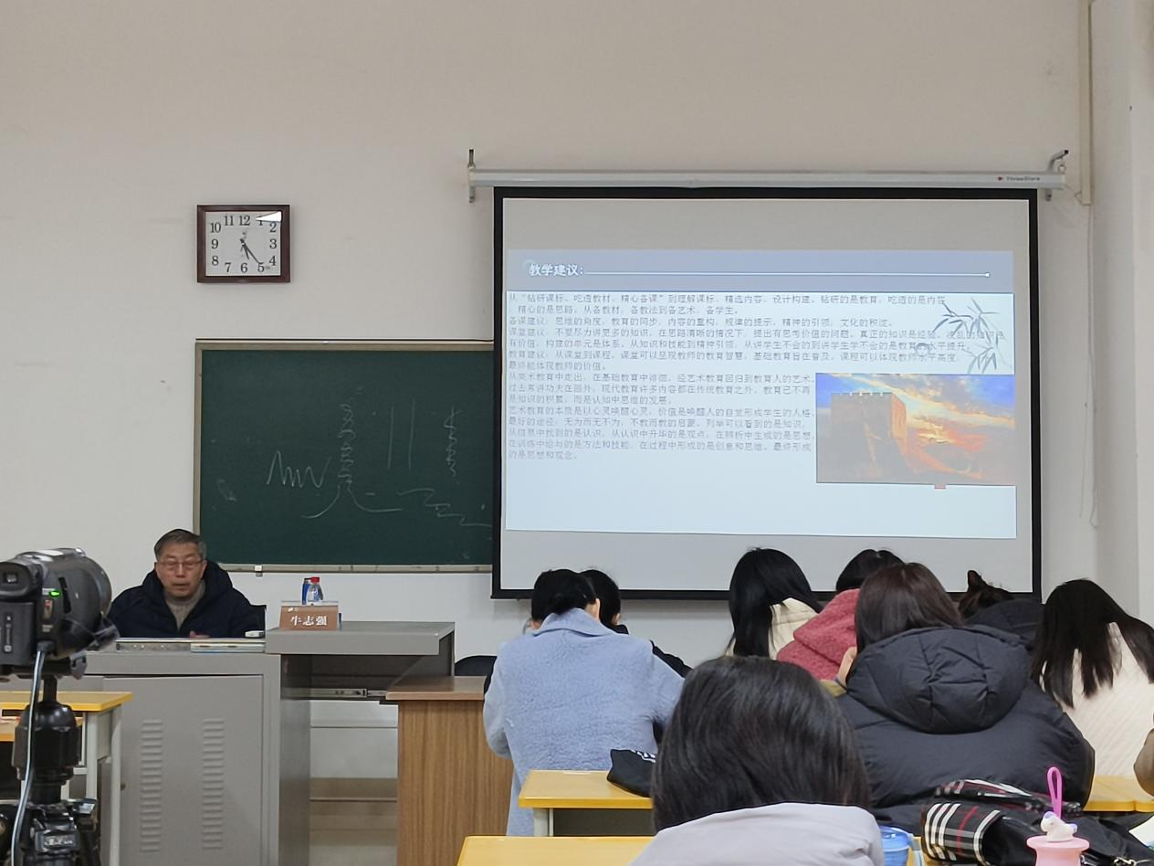 3月7日上午,我院在鸿都楼国培理论教室B404开展“美术教育中的变与不变”主题讲座。本次课程由河南农业大学附属中学中小学高级教师牛志强主讲,我院副教授李蕾主持,省培学员全部参加。